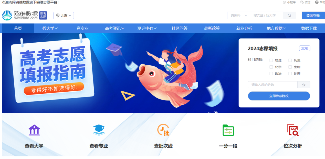 目前,鸥维志愿已经在鸥维数据官网(oweidata.com)正式上线,手机端可通鸥维志愿小程序(微信小程序即将上线)进行使用。