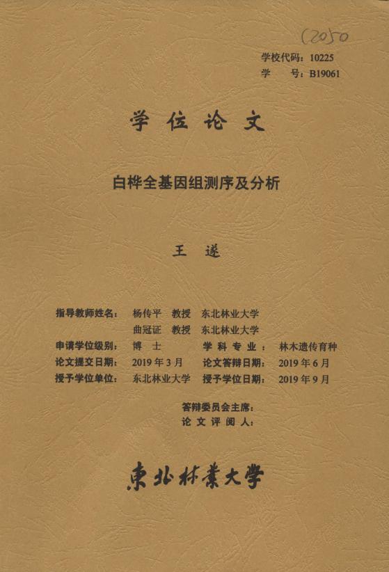 Betula platyphylla is a broadleaved deciduous hardwood tree species belonging to the genus Betula, in the family Betulaceae and can be found in temperate or subarctic regions of Asia. The hoary bark of this tree is marked with long, horizontal lenticels, and it often separates into thin, papery plates, which is the most typical characteristic of this tree species. B. platyphylla is an important afforestation and timber tree species in northern China, and it also has high medicinal value, which has been concerned by researchers. However, there is still a lack of complete genomic information of B. platyphylla, which severely constrains the progress of relevant research. Therefore, this study will use the next- and third-generation sequencing to survey the genome of B. platyphylla, assemble and annotate its organelles and nuclear genome, and analyze their characteristics. Finally, complete genome information of B. platyphylla will be obtained, which will lay a foundation for molecular and breeding research of this tree species. At the same time, based on the high-performance computer cluster of Northeast Forestry University, a pipeline suitable for high-heterozygous tree genome assembly and annotation was developed to help the analysis of other forest tree genomes in the future. Genome survey showed that the genome size of B. platyphylla was about 432.9 Mb, the hybridization rate was about 1.22% and the repeat sequence content was about 47.9%. Undoubtedly, it belongs to the highly polymorphic genome. At the same time, it was found that the leaves obtained from the wild contained bacteria pollution, which might affect the sequencing results. Therefore, I finally decided to use the aseptic tissue culture seedlings of B. platyphylla as the test material, and complete the whole genome sequencing through the next-and third-generation sequencing. The complete chloroplast genome of B. platyphylla was 160,518 bp in length, which included a pair of inverted repeats (IRs) of 26,056 bp that separated a large single copy (LSC) region of 89,397 bp and a small single copy (SSC) region of 19,009 bp. The annotation contained a total of 129 genes, including 84 protein-coding genes, 37 tRNA genes and 8 rRNA genes. There were 3 genes using alternative initiation codons. Comparative genomics showed that the sequence of the Fagales species chloroplast genome was relatively conserved, but there were still some high variation regions that could be used as molecular markers. RNA editing sites recognition indicated that at least 80 RNA editing events occurred in the chloroplast genome. Most of the substitutions were C to U, while a small proportion of them were not. In particular, three editing loci on the rRNA were converted to more than two other bases that had never been reported. For synonymous conversion, most of them increased the relative synonymous codon usage (RSCU) value of the codons. The phylogenetic analysis suggested that B. platyphylla had a closer evolutionary relationship with B. pendula than B. nana. The complete mitochondrial genome of B. platyphylla was 581,539 bp in length and the GC content was 45.5%. A total of 65 genes were annotated, including 40 protein-coding genes, 22 tRNA genes and 3 rRNA genes. Repeat sequence analysis showed that there were 96 interspersed repeat sequences in the genome, including 43 forward and 53 palindromic repeat sequences. The results of genome comparison showed that the mitochondrial genome of B. platyphylla had good collinearity with the related species B. pendula. A total of 475 RNA editing sites were identified in B. platyphylla mitochondrion, far more than chloroplast. Collinearity analysis showed that five long fragments of the mitochondria genome came from chloroplast genome, accounting for 4.2% of the total length. The nuclear genome of B. platyphylla had a total size of 430.4 Mb, comprising 1,540 contigs with an N50 contig size of 754.6 kb, and a GC content of 35.7%. With the help of the female, male, and F₁ population genetic maps, 91.3% contigs were mounted onto 14 pseudochromosomes. The identified repeat sequences accounted for 50.54 % of the entire genome, most of them were transposable elements (TEs). A total of 512 tRNA genes and 265 rRNA genes were obtained from non-coding RNA annotation. I further identified 31,578 genes using my pipeline, of which 27,965 (88.6%) were functionally annotated in public databases. The average length of gene region and CDS region were 4,229 bp and 1,089 bp respectively. On average, each gene contained 4.78 exons, and 7,086 alternative splicing genes were identified. BUSCO analyses using annotated protein sequence identified 94.2% complete genes. Collinearity analysis showed that the genomes of B. platyphylla, Vitis vinifera and Populus trichocarpa had good collinearity at the chromosome level, some typical syntenic regions in B. platyphylla and V vinifera matched up to double regions in P. trichocarpa. Whole genome duplication analysis confirmed that B. platyphylla experienced a whole-genome triplication (WGT-γ) and no recent whole-genome duplication (WGD) occurred. The phylogenetic analysis suggested that B. platyphylla and B. pendula were sister species and separated about 2.6 million years ago (Mya). Keywords Betula platyphylla; chloroplast; mitochondrion; genome